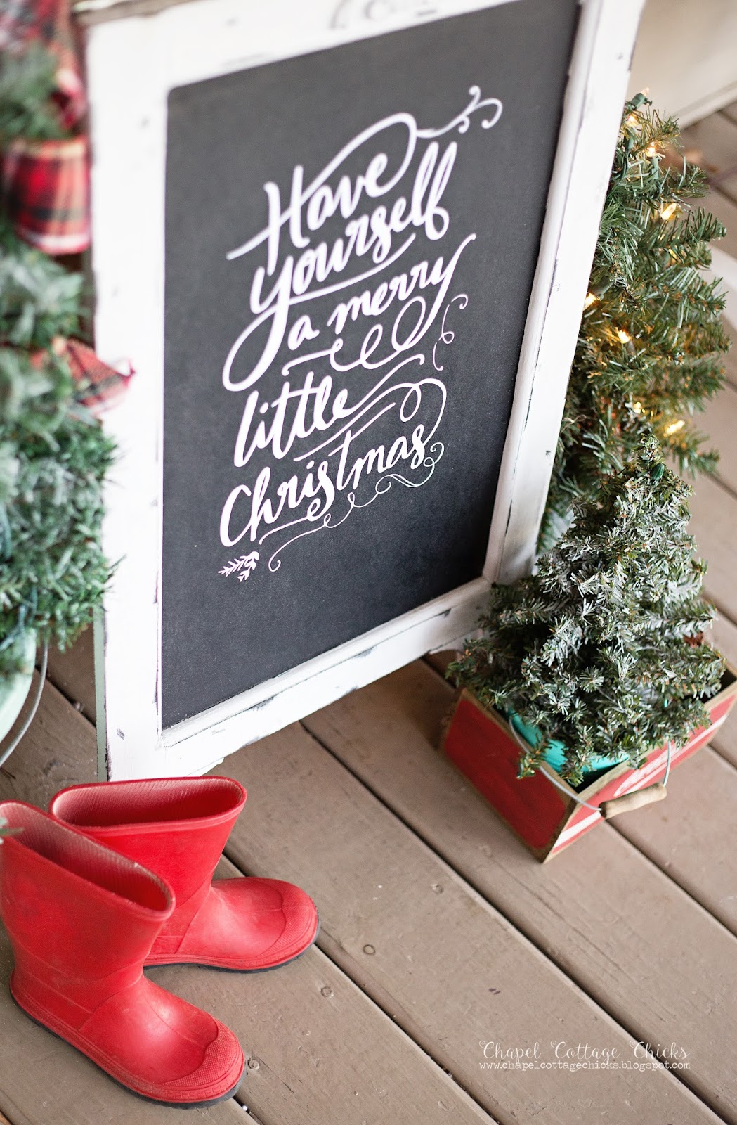 I made the wreath with a sign and a few sled ornaments that I found at Big Lots. And of course, I had to add a touch of plaid with the ribbon!